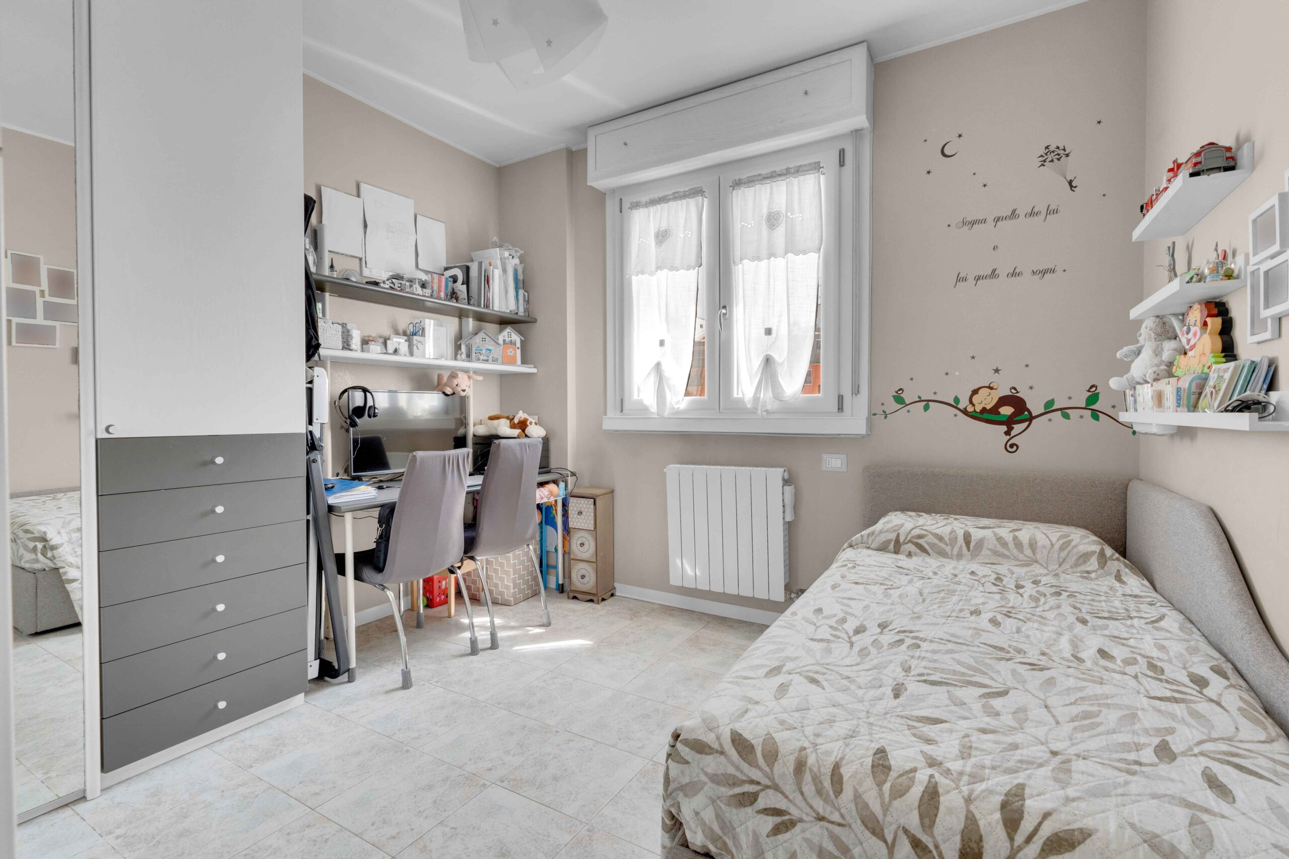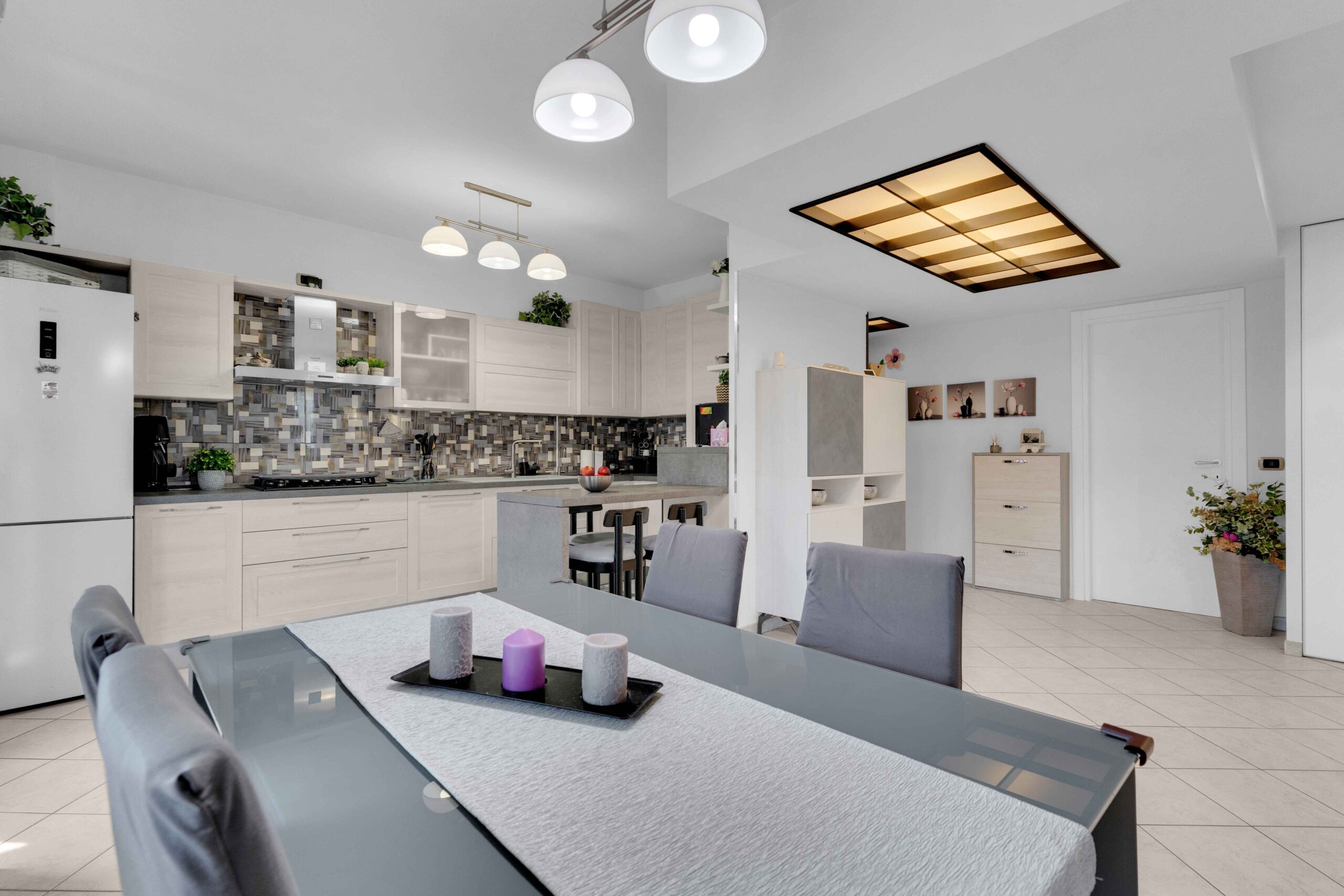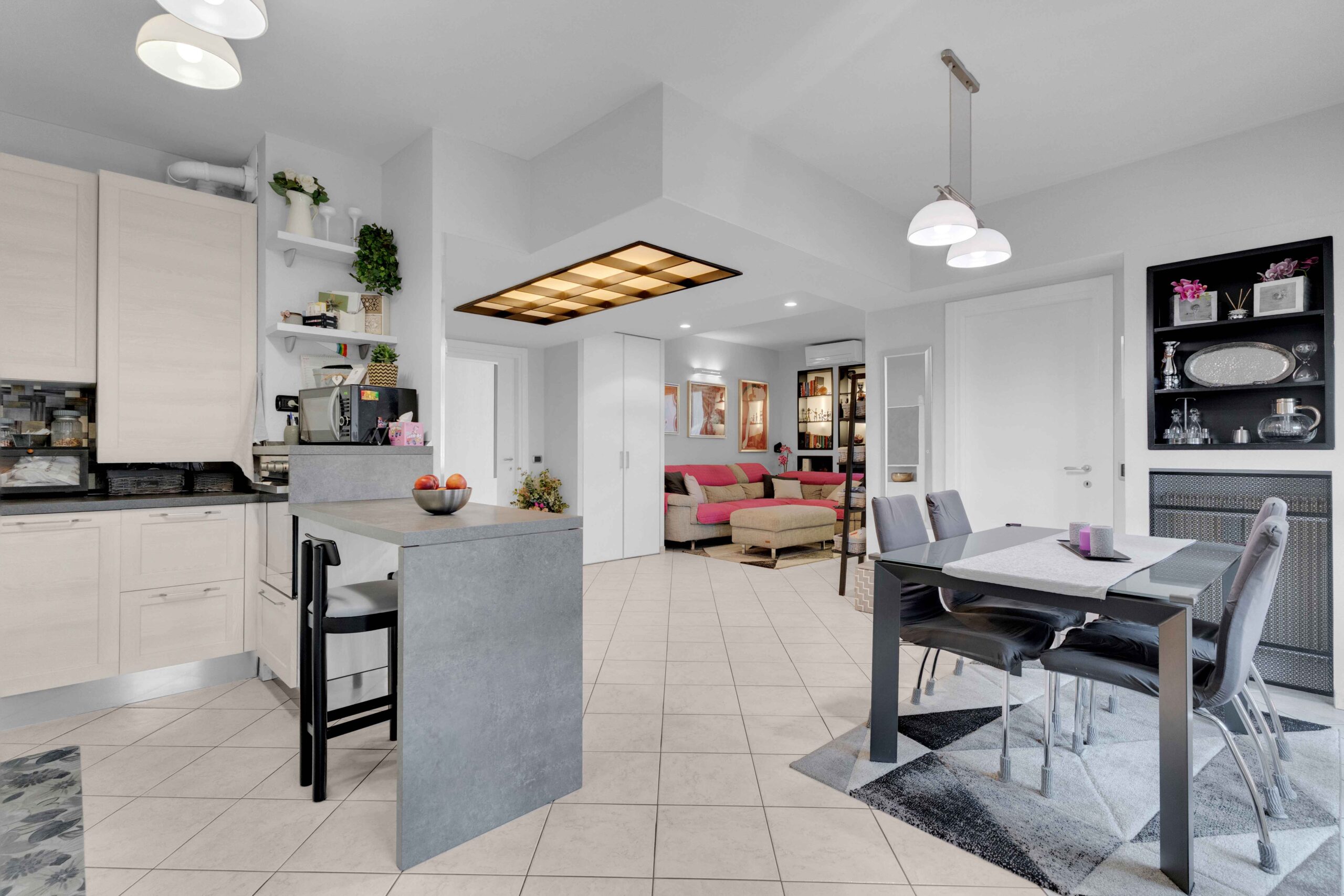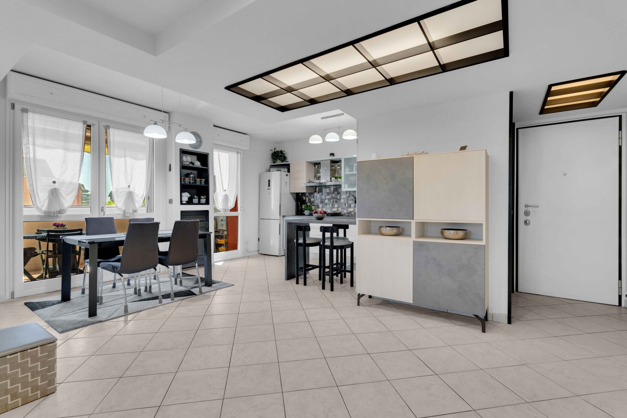 Si tratta di una soluzione progettata per essere un 4 locali ma trasformata in un piacevole arioso 3 locali.
