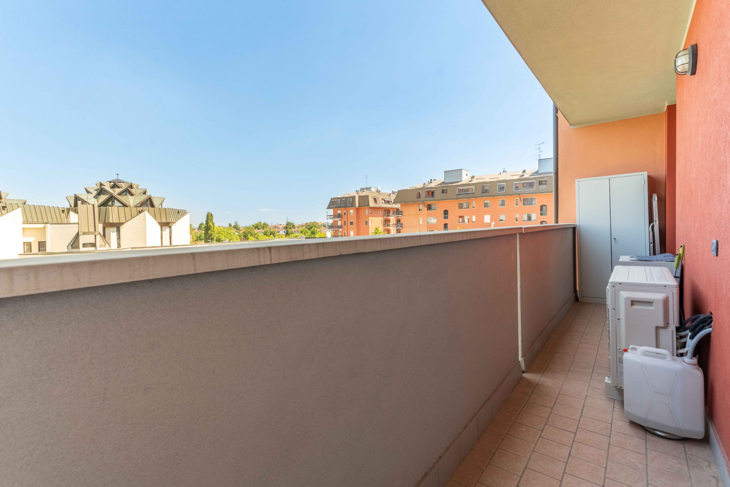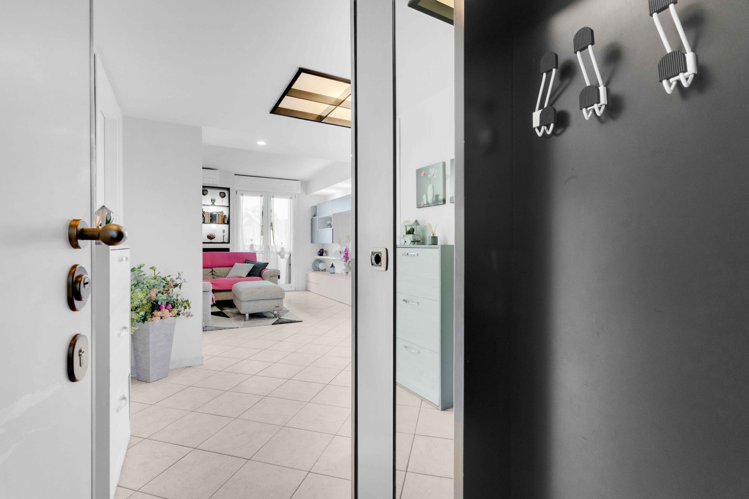 Saliti al terzo piano con l’ascensore e superata la porta d’ingresso di tipo blindata si è accolti da una piacevole, ampia e luminosa zona living e subito ci si sente “a casa”. Dalla zona salotto grazie alla porta finestra si accede al un primo balcone che comunica anche con la camera matrimoniale. Anche dalla cucina e dalla zona pranzo si può uscire su un secondo balcone vivibile dove è possibile posizionare un tavolo con le sedie per una cena in famiglia o con amici.